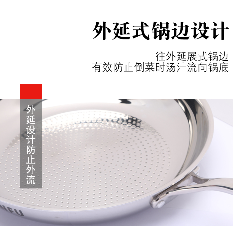 ●采用复合型材料一体拉伸成型,三层材料组成,由304不锈钢层+纯铝层+导磁钢层组合经过延压工艺成一块整体材料,这样称之为复合钢材料,一般用作于制造高品质、高档次产品,国际高端大品牌比较常用的一种材料。