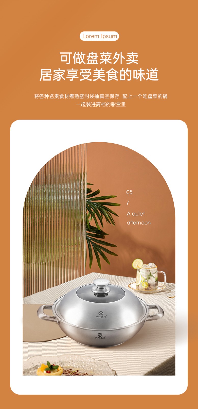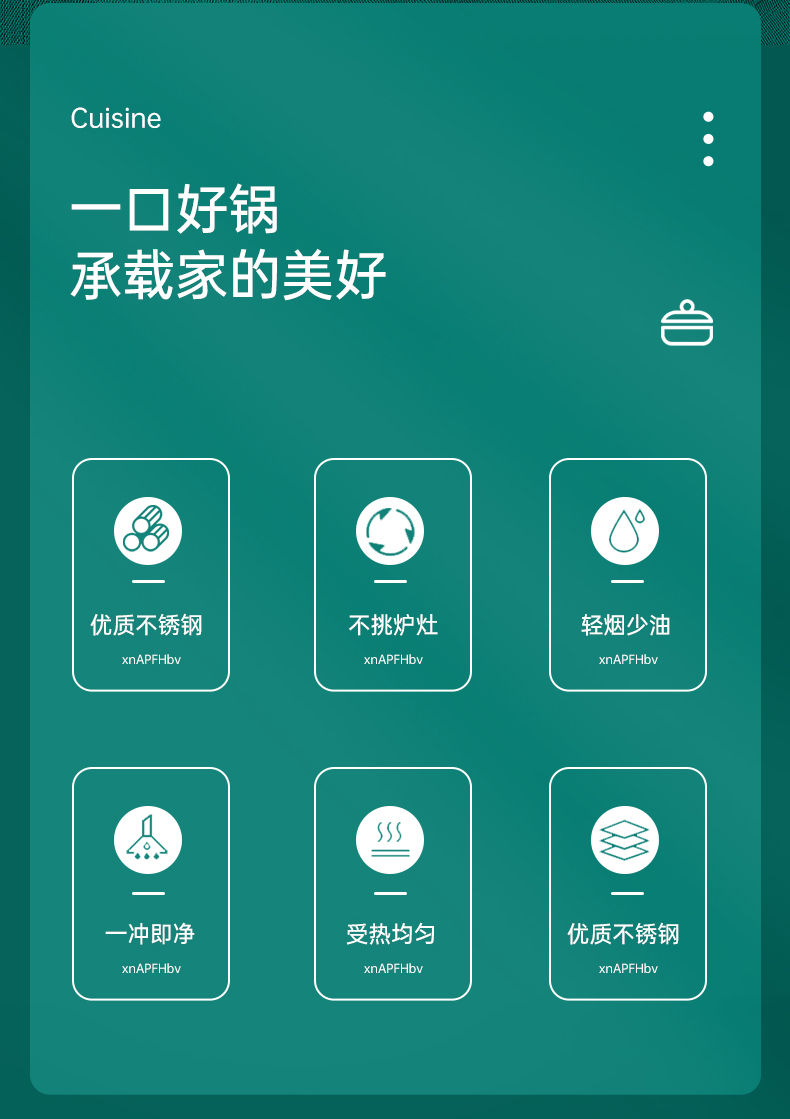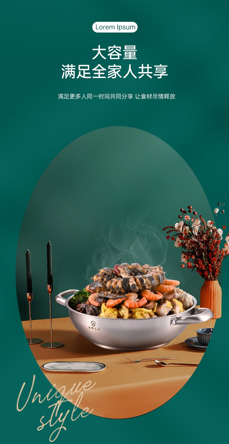●可透视不锈钢锅盖,食物情况一清二楚,锅盖提手平面设计,反向平稳放置锅盖,有效避免摇摆摔坏。加大不锈钢锅耳,端锅踏实不拍掉,空心锅耳散热快,有效防烫。
