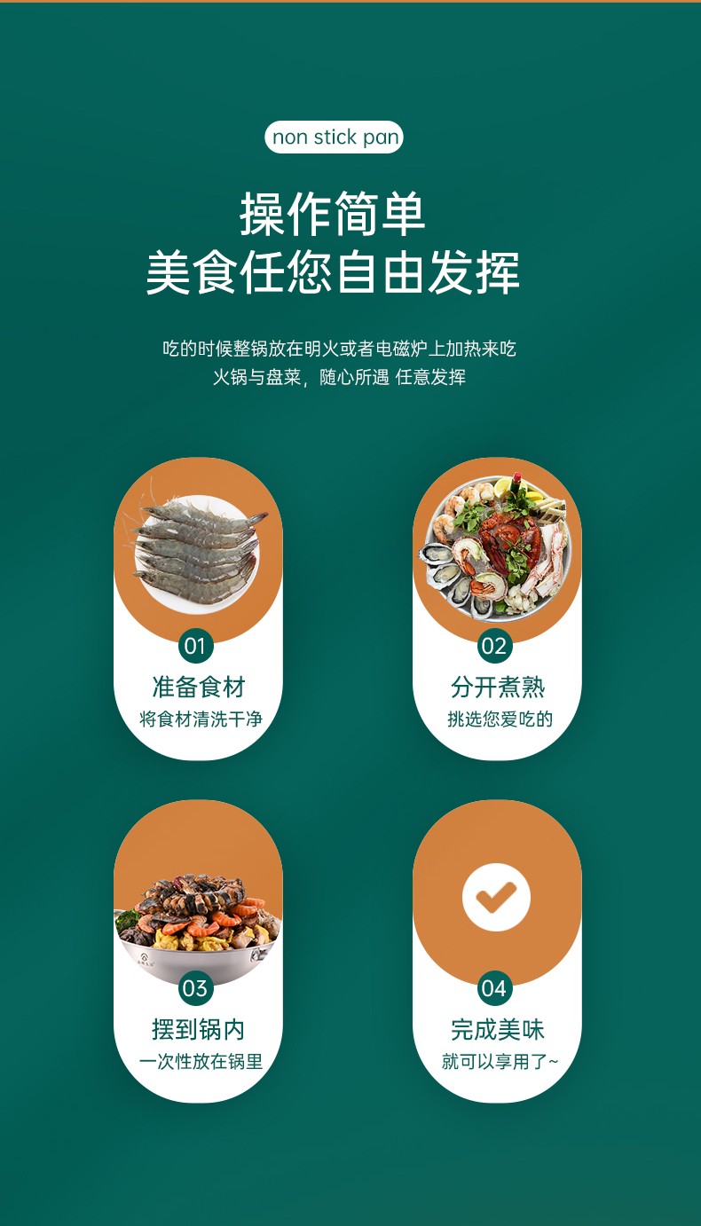 ●质优不锈钢材质,新颖创新设计,健康无涂层,采用物理不粘技术,配置一块防粘隔片,有效实现不粘效果。